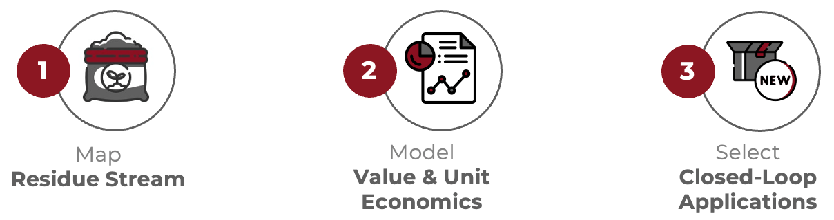 We validate the engineering and economic reality of the feedstock before any capital commitment. In two onsite working days, residue streams are verified (type, variability, contamination, handling), the double-spend baseline is quantified (disposal/handling/logistics), and value ranges are modeled from cost avoidance and input displacement. The Diagnostic concludes with a clear recommendation — Proceed, Pause, or No-Go — and defines the closed-loop applications and minimum conditions required for implementation.